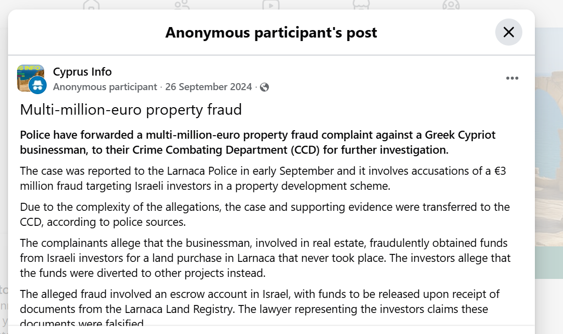 Official Article published by Cyprus Property News on one of many fraudulent involvements of Savvas Kakos in the real estate field.